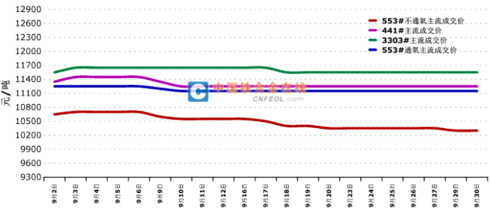 In September, metallurgical low grade silicon metal market was returned calm after August significantly increased operation, buyers were not accepted such high price so that the market transactions were affected, some factories adjusted the price to stimulate the market instead of insisting high price, so the overall market was fluctuated from Sep.In addition to 553 non-oxygen grade fells significantly while other grade with the slightly adjustment to keep the closer price range. But the market also exists low transaction phenomenon and the port price just keep little changes. Si 441 is in short supply in Xinjiang and Si 3303 is now produced by very limited factories in Xinjiang area as well.